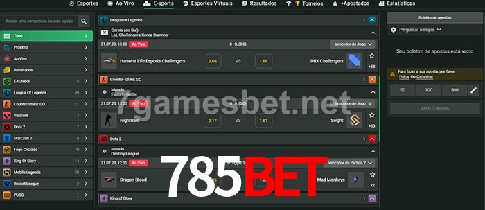 O 785bet oferece uma grande seleção de opções de apostas em e-sports com probabilidades competitivas